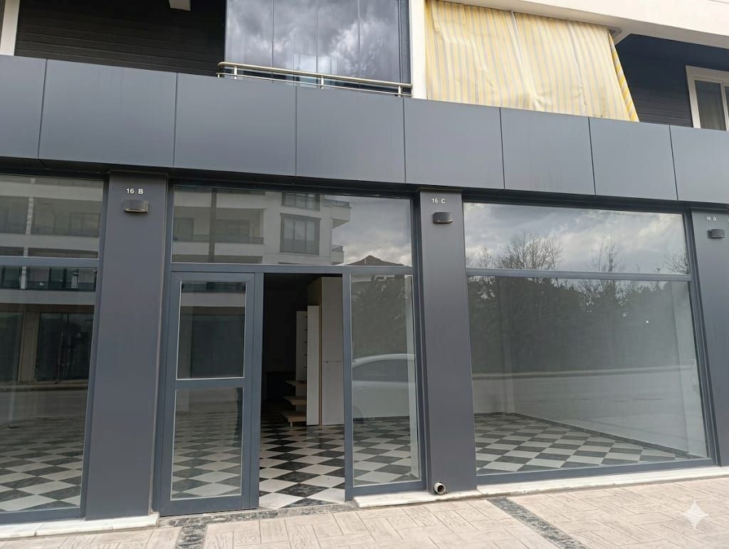 Cephe: Geniş cam vitrinli, modern dış cephe.