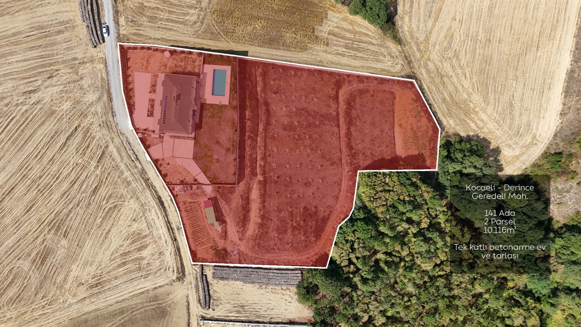 MUHTEŞEM DOĞA İÇİNDE GÖL MANZARASINI İZLEYEREK HUZUR BULABİLECEĞİNİZ HAVUZ KEYFİ İLE GÜNLÜK STRESTEN UZAKLAŞABİLECEĞİNİZ HARİKA FIRSAT... DERİNCE GEREDELİ KÖYÜNDE İSHAKÇILAR KÖYÜ VE TAHTALI GÖLETİNE SADECE 5 DAKİKA UZAKLIKTA DERİNCE MERKEZE 25 DAKİKA UZAKLIKTA, KUZEY MARMARA GİŞEYE 15 DAKİKA UZAKLIKTA OLAN ŞEBEKE SUYU OLUP ELEKTRİK İÇİN DE TÜM BAŞVURULAR YAPILMIŞ OLUP 1 SENE İÇERİSİNDE HAT GELECEKTİR GÜNEŞ PANELLERİ ÇATIDA MEVCUT OLUP AYRICA GECE KULLANIMI İÇİN JENERATÖR VARDIR GİRİŞTE 8 ARAÇLIK PARK YERİ BULUNMAKTADIR TEK KATTAN OLUŞAN 3 ADET AYRI GİRİŞLİ DAİRELERİMİZ ORTAK VERANDAYA ÇIKMAKTADIR KÖŞE DAİRELER 68 m² NET 81 m² BRÜT ORTA DAİRE İSE 56 m² NET 67.5 m² BRÜT KULLANIM ALANINA SAHİPTİR DAİRELER AMERİKAN MUTFAK OLUP 2+1 DİZAYN EDİLMİŞTİR DAİRELERİN ALTINDA ODUNLUK, JENERATÖR SİGORTASI, HAVUZ İÇİN GEREKLİ EKİPMAN VE İLAÇLARIN BULUNDUĞU MALZEME VE EŞYALARI MUHAFAZA EDEBİLECEĞİNİZ 3 AYRI BÖLME BULUNMAKTADIR TARLAMIZIN TAMAMI(10.116 m²) 1.5 METRE BOYUNDA BETON DUVAR İLE ÖRÜLMÜŞTÜR PEYZAJI YAPILMIŞ OLUP IŞIKLANDIRMA VE HAVUZ AKTİF ÇALIŞMAKTADIR HİÇBİR MASRAF ETMEDEN TEMİZ HAVASINDA KENDİZİ ŞIMARTABİLECEĞİNİZ MUHTEŞEM OLANAKLARA SAHİP ARSAMIZ SATILIKTIR... DETAYLI BİLGİ VE GÖSTERİM İÇİN TRESMO GAYRİMENKUL YAVUZ KAYA 0262 311 03 04 0541 918 93 41