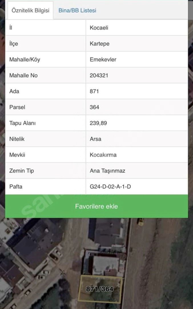 **KARTEPE EMEKEVLER’DE %40 İMARLI PARK & ANA CADDE CEPHELİ – 240 m² SATILIK ARSA** Kocaeli, Kartepe, Emekevler
