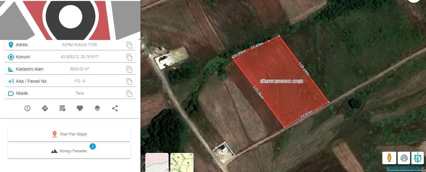 KUTLUCA KÖYÜ SEVİNDİKLİ GİŞELERE ÇOK YAKIN KONUMDA 8.929 M² SATILIK TARLA Kocaeli, Körfez, Kutluca