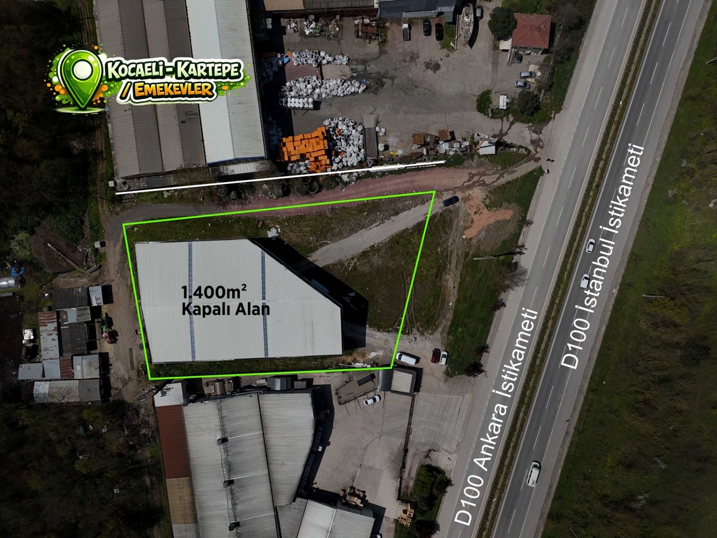 Kartepe D-100'e Cephe 3670 m² Arsa İçinde 1400m² Kapalı 2270m² Açık Alanlı Üretim ve Depolama Tesisi Kocaeli, Kartepe, Emekevler