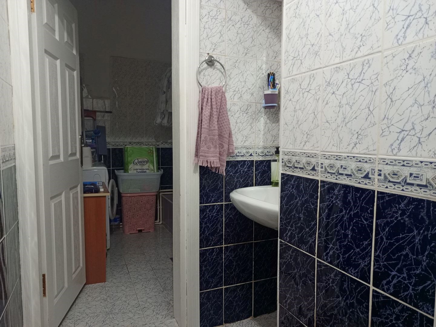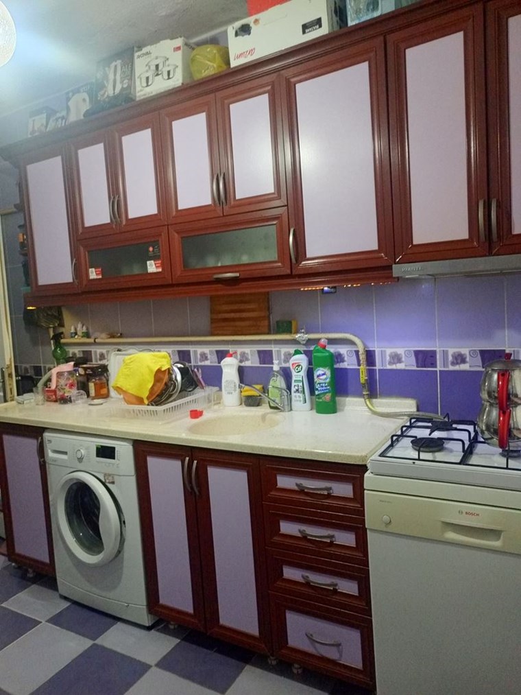 Mutfak ve Banyo: Fonksiyonel ve geniş dolap hacmine sahip modern görünümlü mutfak; temiz ve bakımlı banyo alanı.