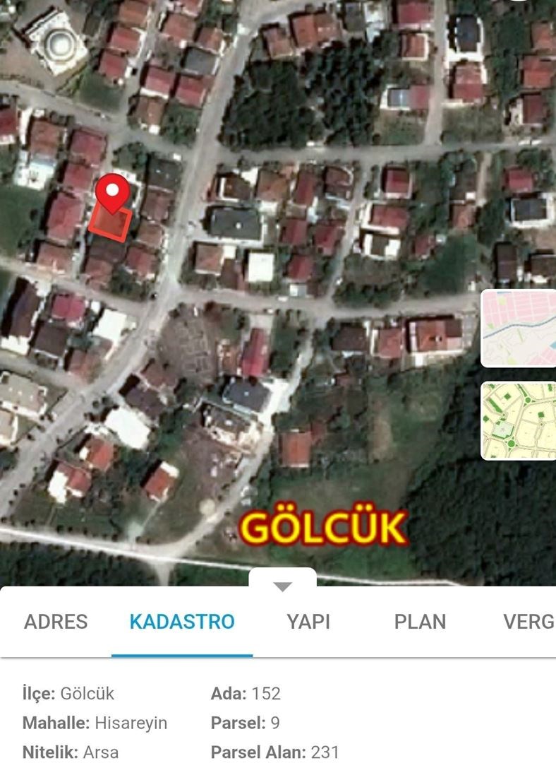 ARSAMIZ, GÖLCÜK HİSAREYN/KARAKÖPRÜ BÖLGESİNDE OLUP, 152 ADA 9 PARSELDE BULUNMAKTADIR ARSAMIZIN BRÜT TABAN ALANI ORTALAMA 83 M², BRÜT TOPLAM İNŞAAT ALANI 250 M² DİR TERCİHİNİZE GÖRE BAHÇELİ MÜSTAKİL EV YADA OTURUM VE YATIRIM İÇİN DAİRELER YAPILABİLİR SOSYAL OLANAKLARA YAKINDIR, MERKEZE VE ANAYOLA RAHATLIKLA ULAŞABİLİRİSİNİZ